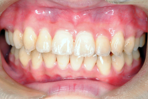 主訴 上の前歯の歯肉が腫れて飛び出してくる、他院で抜歯を勧められた。