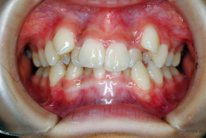 咬み合わせ。歯並び上顎左右2番が飛び出しているのが気になる。